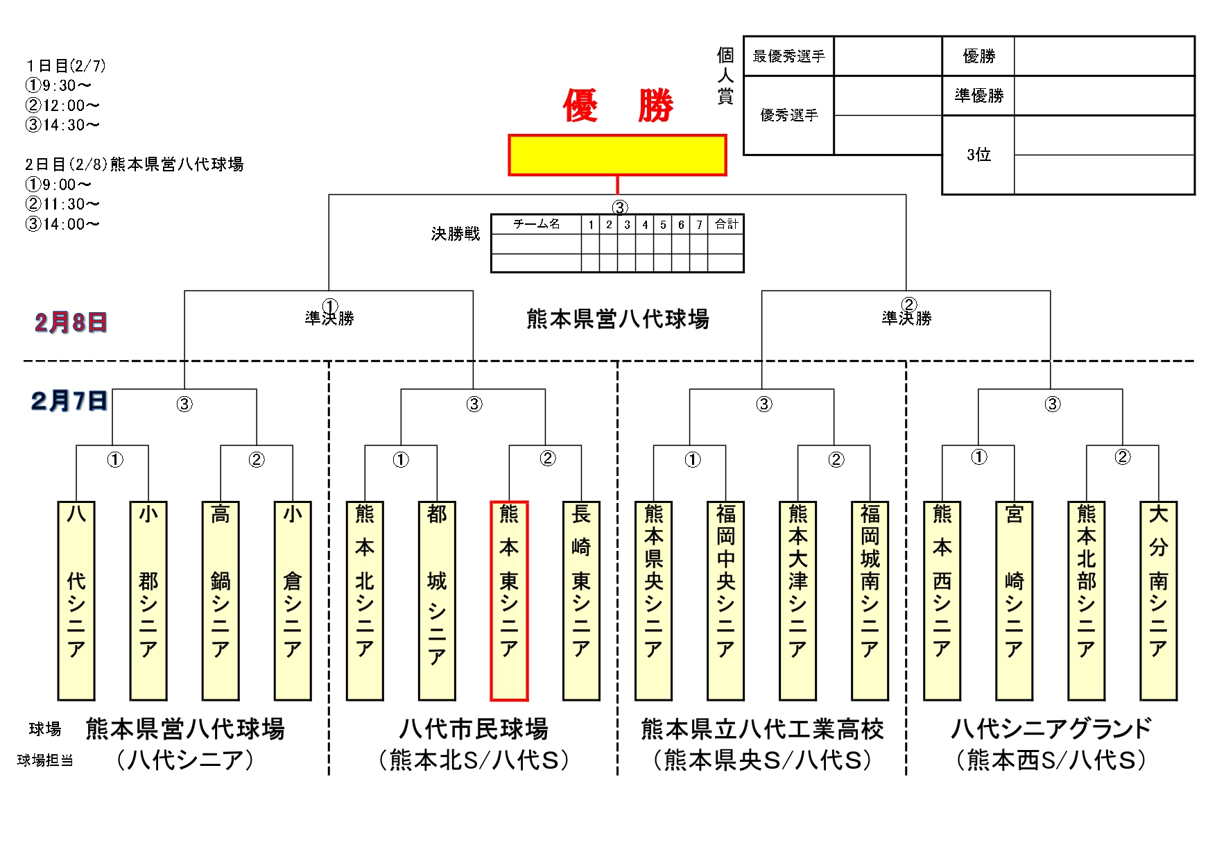 | 熊本東リトルシニア | 0 | 0 | 2 | 0 | 0 | 0 | 1 | 3 |