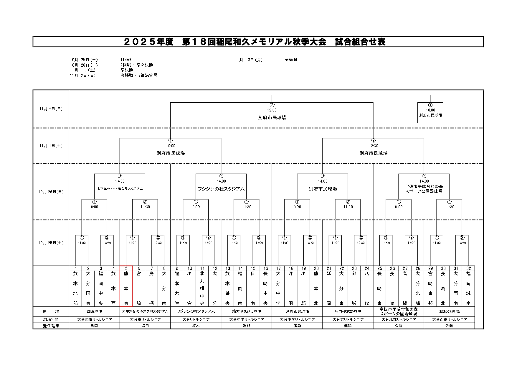 第18回稲尾和久メモリアル秋季大会の組み合わせが決定しました!